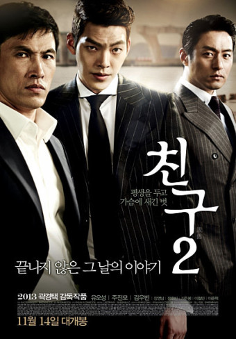 **<친구2>**는 2013년 개봉한 곽경택 감독의 작품으로, 2001년 개봉한 **<친구>**의 후속작입니다. 전작에서 비극적인 결말을 맞이한 친구들의 이야기를 기반으로, 새로운 세대의 갈등과 우정을 다루며, 조직폭력 세계의 현실적이고 어두운 모습을 강렬하게 그렸습니다.